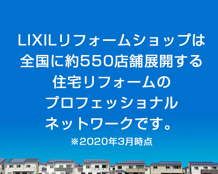 LIXILが運営するリフォームフランチャイズチェーン。 建築士、建設業許可を取得した地域密着型のリフォーム工務店が全国に約550店舗※ 加盟。 確かな品質と高い技術力で、ひとりひとりのお客様に寄り沿い、 自由なデザインと社会貢献を意識した間取設計で、住宅の性能を向上させるご提案をしています。