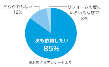 リフォームコンシェルジュの認定期間は一年間。アンケートによるお客さまからの評価をもとに、毎年審査を行います。お客さまから認められた人物だけが、リフォームコンシェルジュと呼ばれつづけます。
