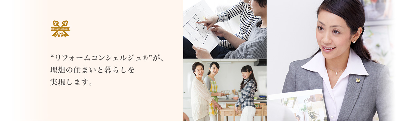 LIXILリフォームショップは、家づくりにおける「人の力」を重視し、お客さまのライフスタイルに最適な住まいをご提案、完成までエスコートする家づくりのパートナー「リフォームコンシェルジュ」の認定制度を進めています。