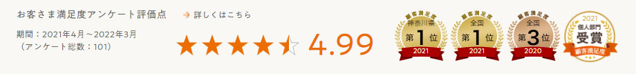 ※評価期間 2024年4月1日~2023年3月31日 ※ランキングは、加盟店スタッフ約1800名の中から、アンケート回答数が一定以上の件数を満たし、 評価を受けた総合満足度の平均点を算出しております。