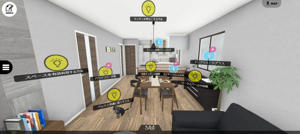 アイテムマークをタップすると、動画や画像でリフォームポイントを簡単にご案内可能です。