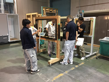 また、LIXILアカデミーは普遍的なリフォーム知識、ビジネススキル知識も含め、マイスター制度と同様に実際に売る商材(↑の画像は窓リフォーム商材のリプラスの取り付け研修風景)と紐づいた研修も用意しているので、リフォームの知識・実務・商材のことについて体系的に学べるようになっています。