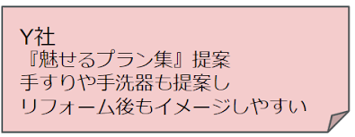 Y社さまからは、LIXILリフォームアクセルADVANCEの「魅せるプラン集」を活用した提案をしていただきました。