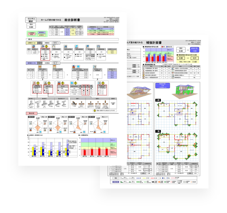 地震に対する強度を数値化して、住まいの耐震性能を総合的に診断します。