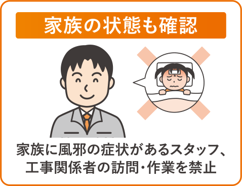 LIXILリフォームショップは、お客様の健康と安全を第一にご自宅への訪問時、作業時における安全配慮ヘの取り組みを実施しています。