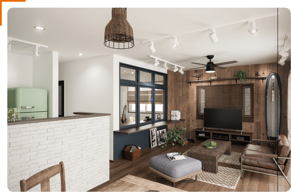 「中古物件購入+リノベ」なら、間取り、壁、床、住設器具などの内装部を好みのデザインにすることで世界にひとつしかない「理想の住まい」を創ることができます。