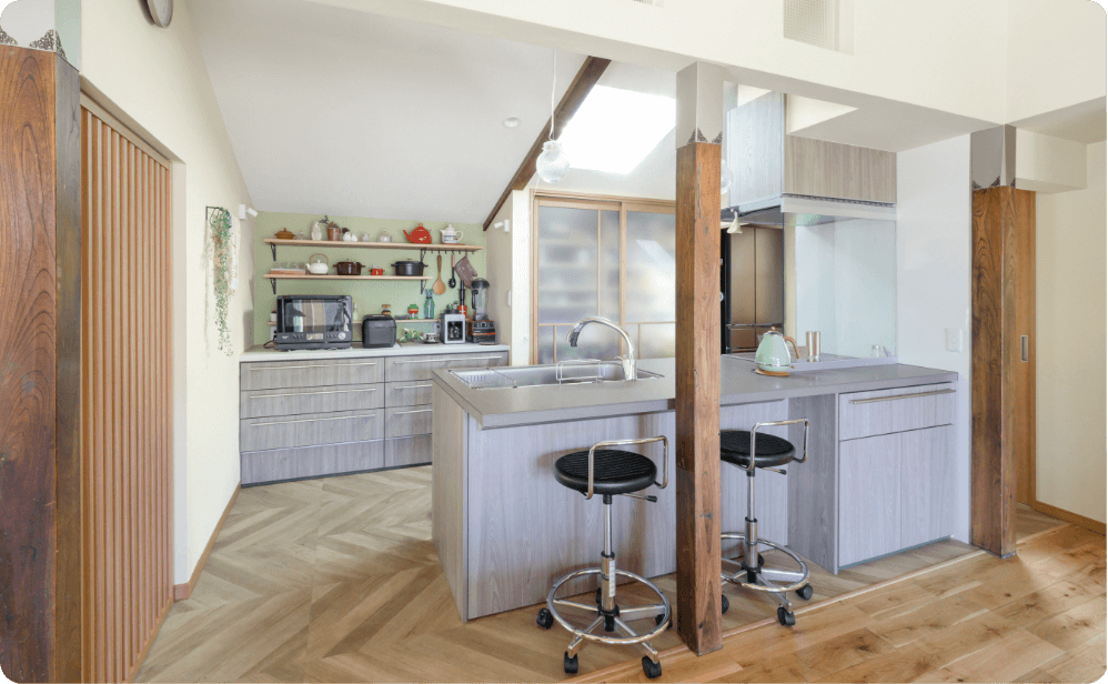 快適なLDKに古民家ならではの古さを活かすだけでなく、モダンの新しさを取り入れたかった。いろんなアイディアを一緒に考えてくれるなど、柔軟な対応に感謝してます。