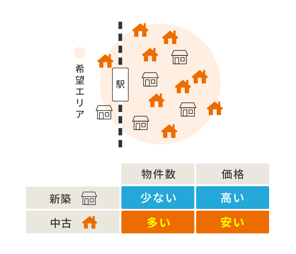 どうしても譲れない条件がある場合は、新築よりも物件供給量が多く豊富な選択肢がある中古物件の方が、より自分の好みにあった住まいを見つけやすいと言えるでしょう。