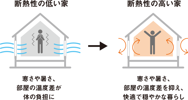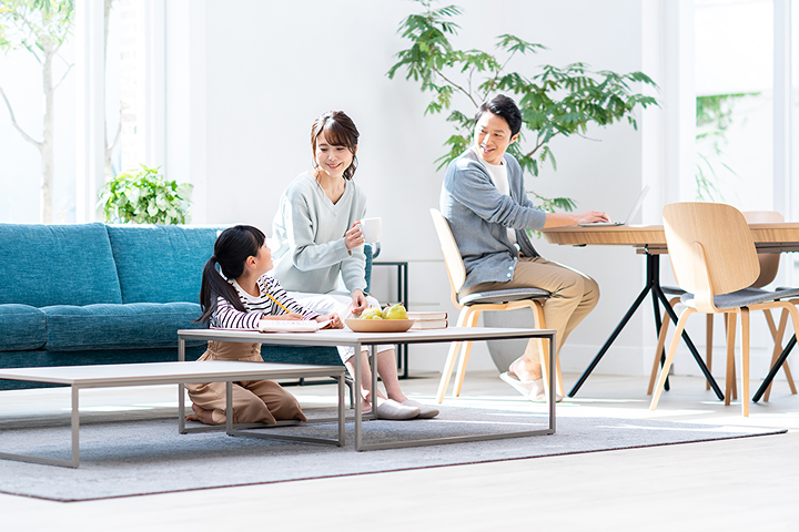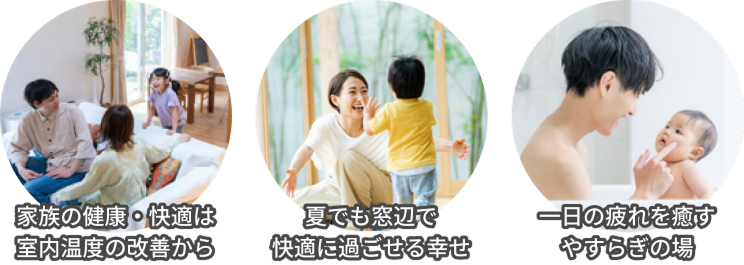 部屋の断熱性能を高めると、夏は涼しく、冬はあたたかく、冷暖房効率が上がり、年間を通して快適にお過ごしいただけます。夏も冬も、ここちよい室内空間で、家族みんなで元気に過ごしませんか?