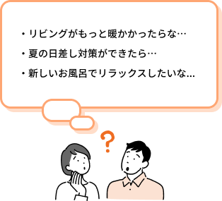 温度や湿度、風通しなどを改善して、ここちいい空間に整えたり、最新設備機器の導入でストレスの少ない生活・快適性を実現します。