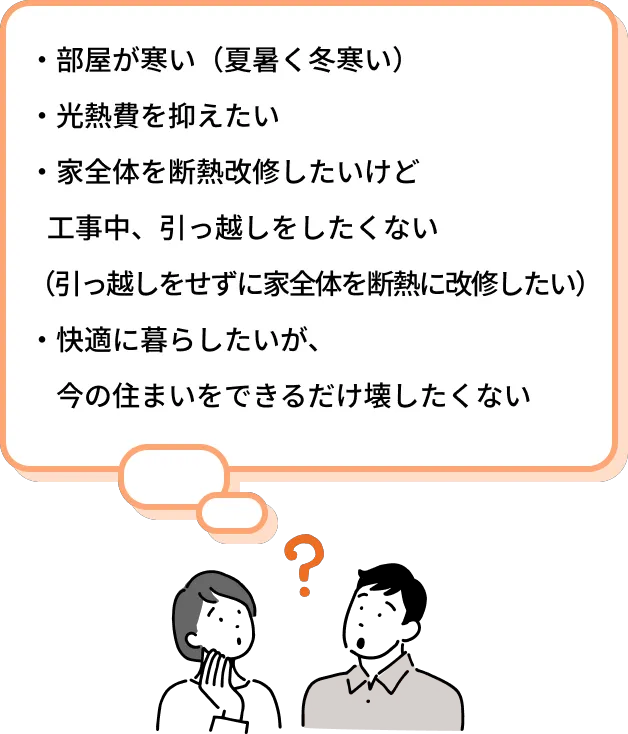 床下空間が狭い場合など、床下側からの断熱施工ができず、床を解体する必要がある場合がありますのでご注意ください。