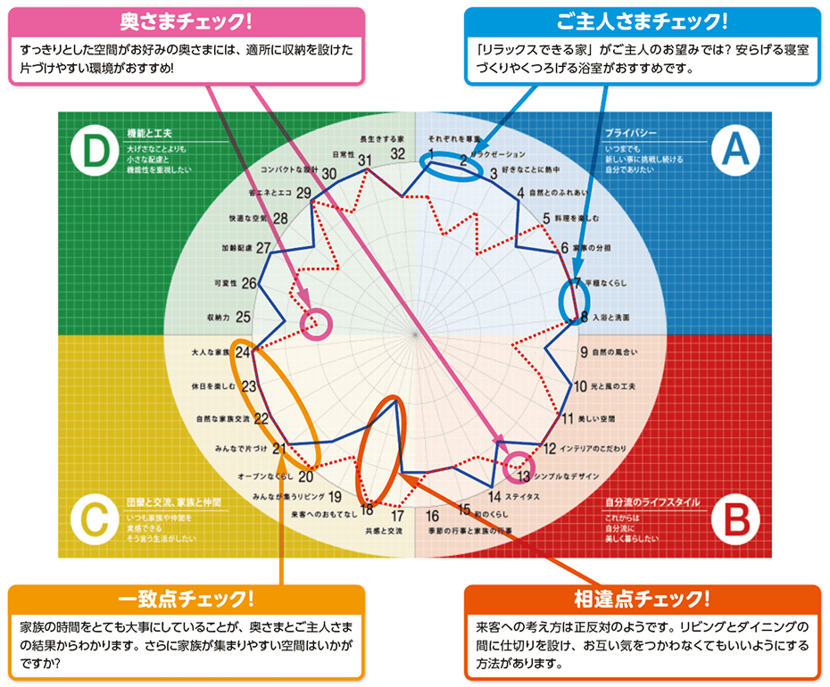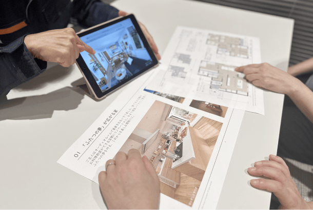 これから家でどんな毎日を過ごしたいか、またお話を聞いた中ではどんな暮らし方が好きか、会話をしながらすり合わせするための打合せに用いるのでしっかり要望を伝えながらリフォーム実現に繋げられます。