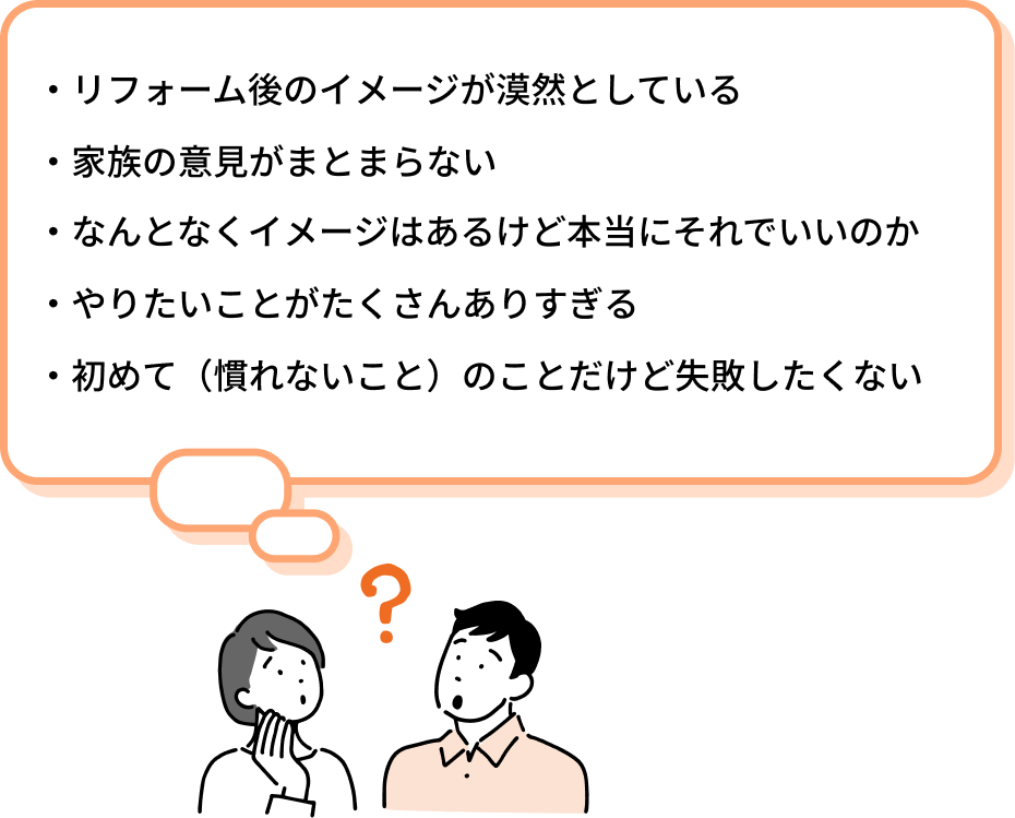 ご家族それぞれの思いを整理し、本当の意味で納得できるリフォームを行うきっかけづくりをお手伝いします。