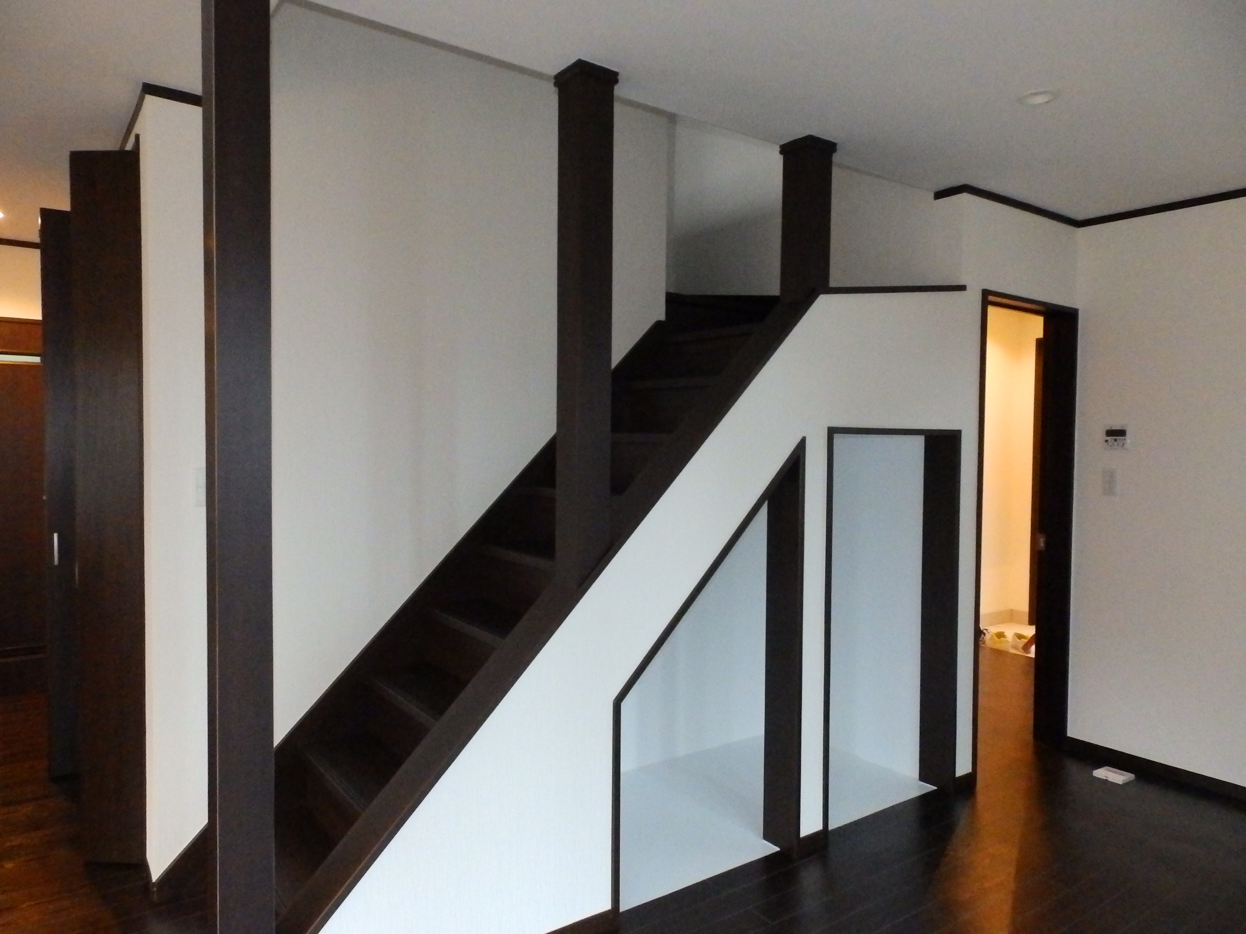 元々は和室で使われていない部屋でしたが、家中で一番お日様が入ってくる場所なのでリビングとなりました。階段下のデッドスペースは愛犬のスペースとする事で無駄がありません。