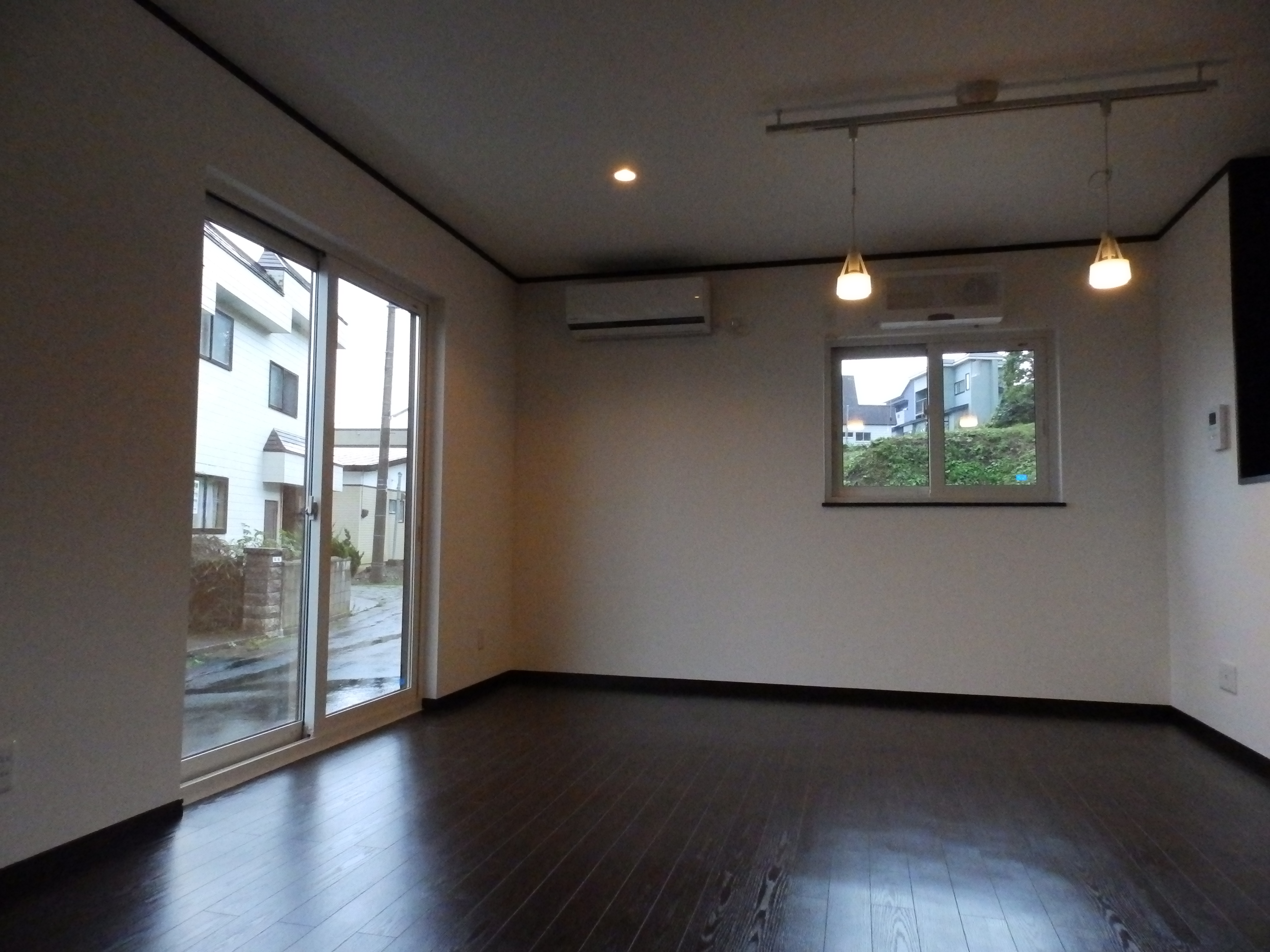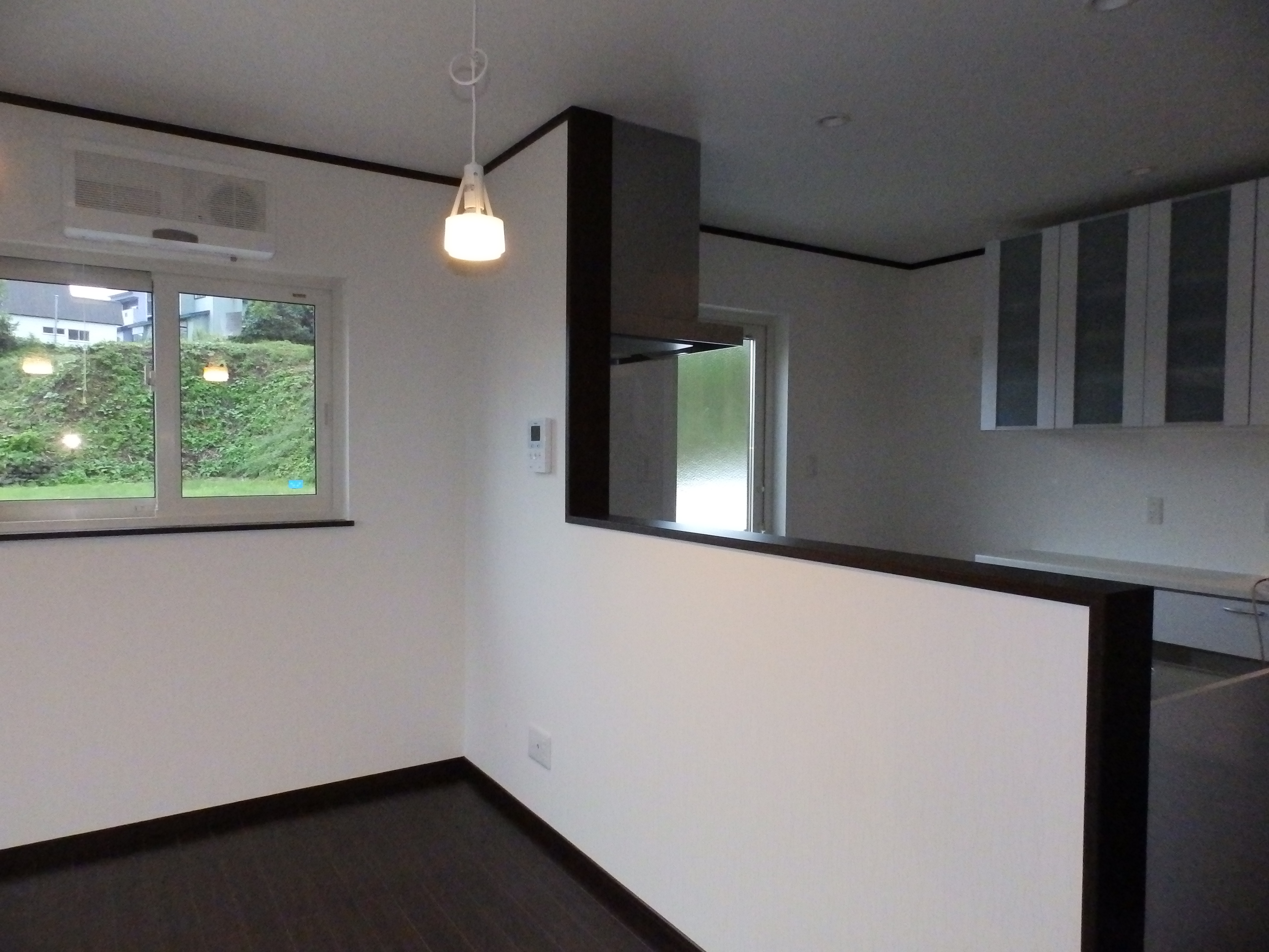 外の眺めもよく広々したダイニング 落ち着いた色の床材が空間を引き締めます。