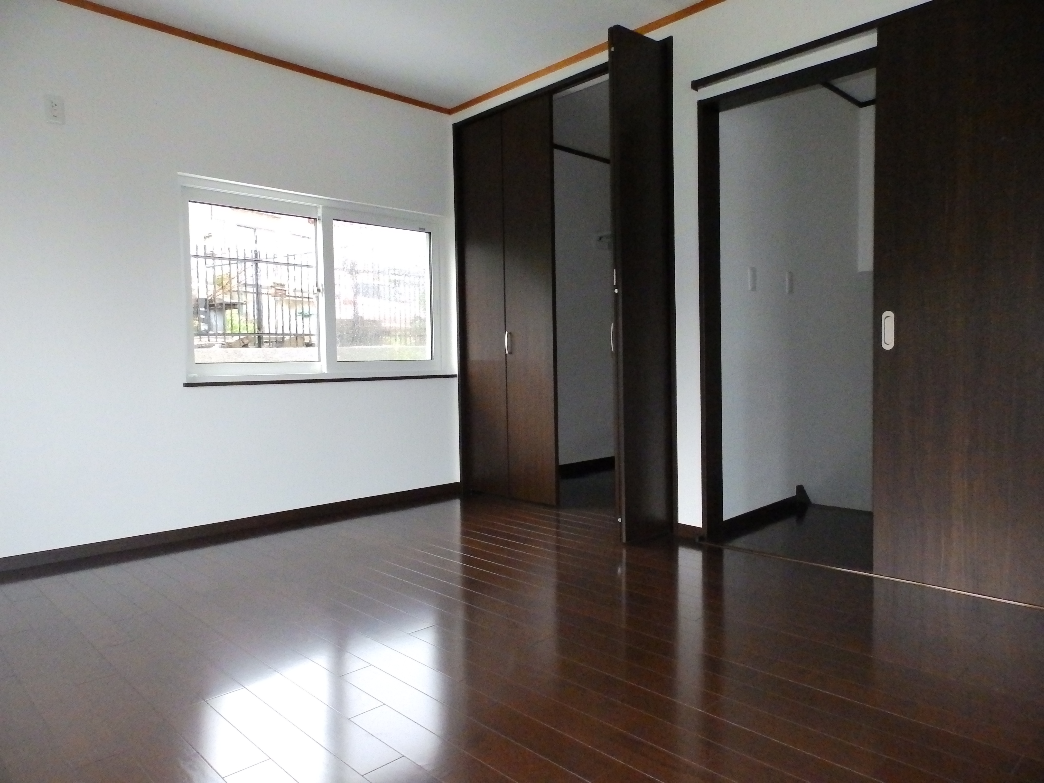 2Fの寝室も1Fと同様のインテリアで統一しました。 押入れだった収納スペースをウォークインクローゼットにする事でスッキリと片付きます