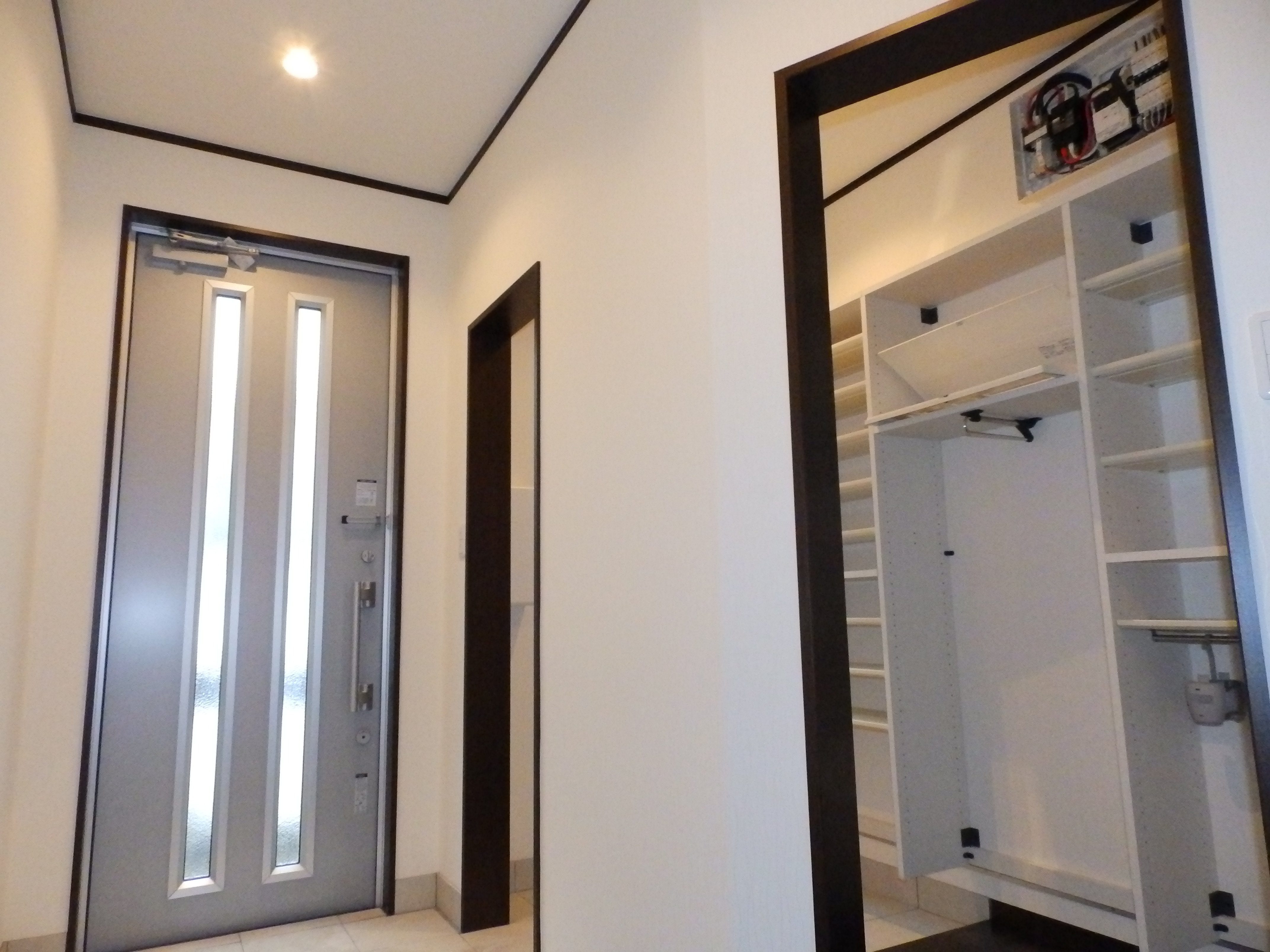 LIXILの断熱ドア ジエスタ 優れた断熱性能で、夏は涼しく、冬は暖かくを実現。 玄関を入るとプライベート空間のシューズクローゼットを併設。遊びに来られたお客様は、いつでもすっきりと片付いた玄関で迎え入れる事が出来ます。