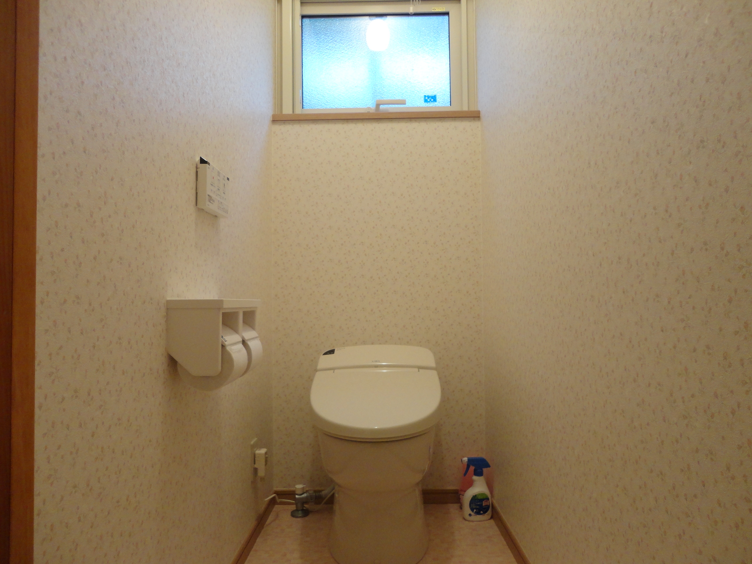 非水洗から水洗トイレへ。かわいいい花柄の壁紙に、お孫さんも怖がらずにすみますね。