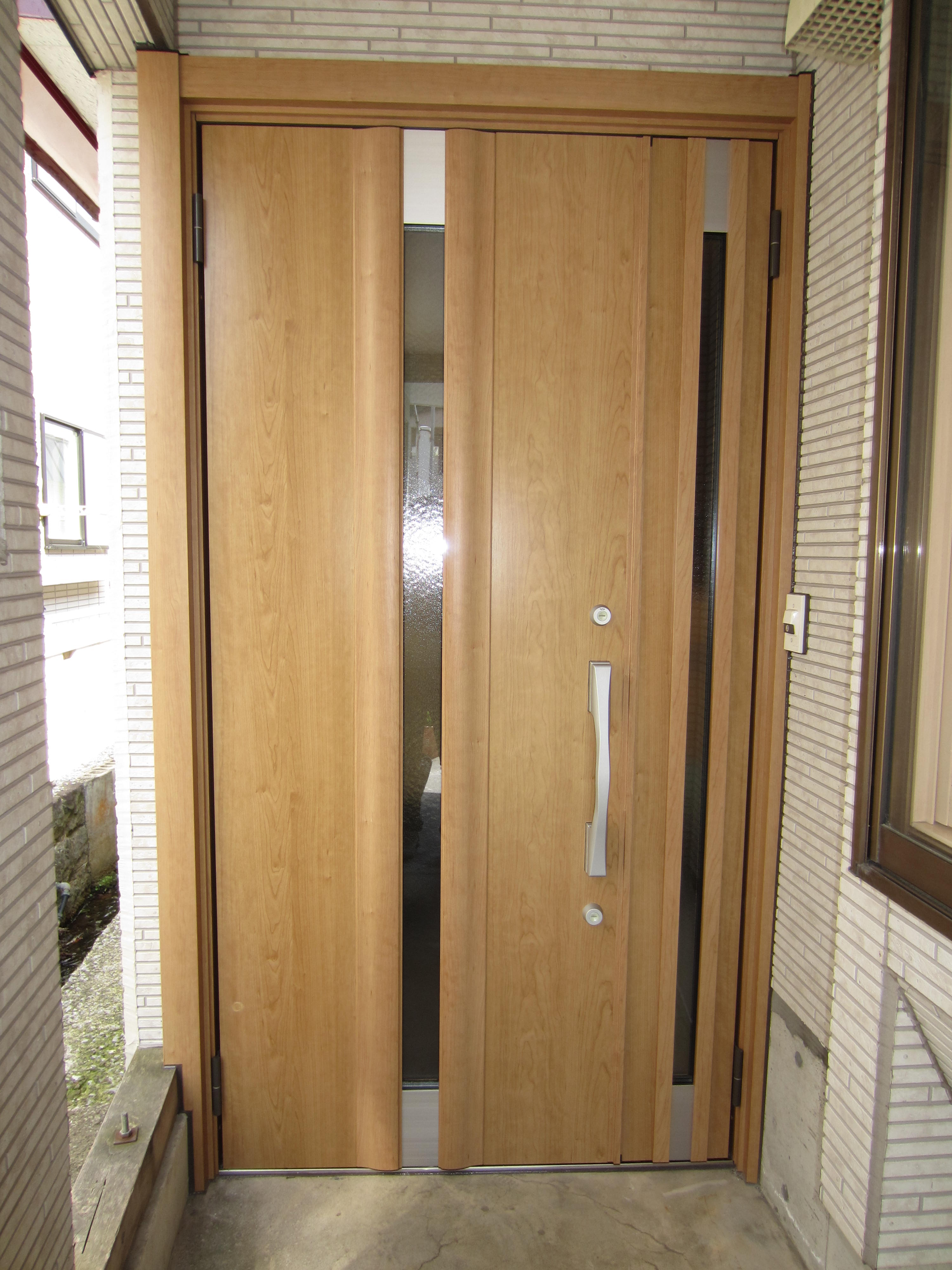 玄関ドアが古くなってきて、冬も寒い・・・ということで玄関ドアをリフォーム。断熱玄関ドアなので、夏は涼しく、冬は暖かくなりました。柔らかい木目のデザインで玄関まわりがパッと明るくなりました。リフォーム用の玄関ドアなので工事は1日で終わります。