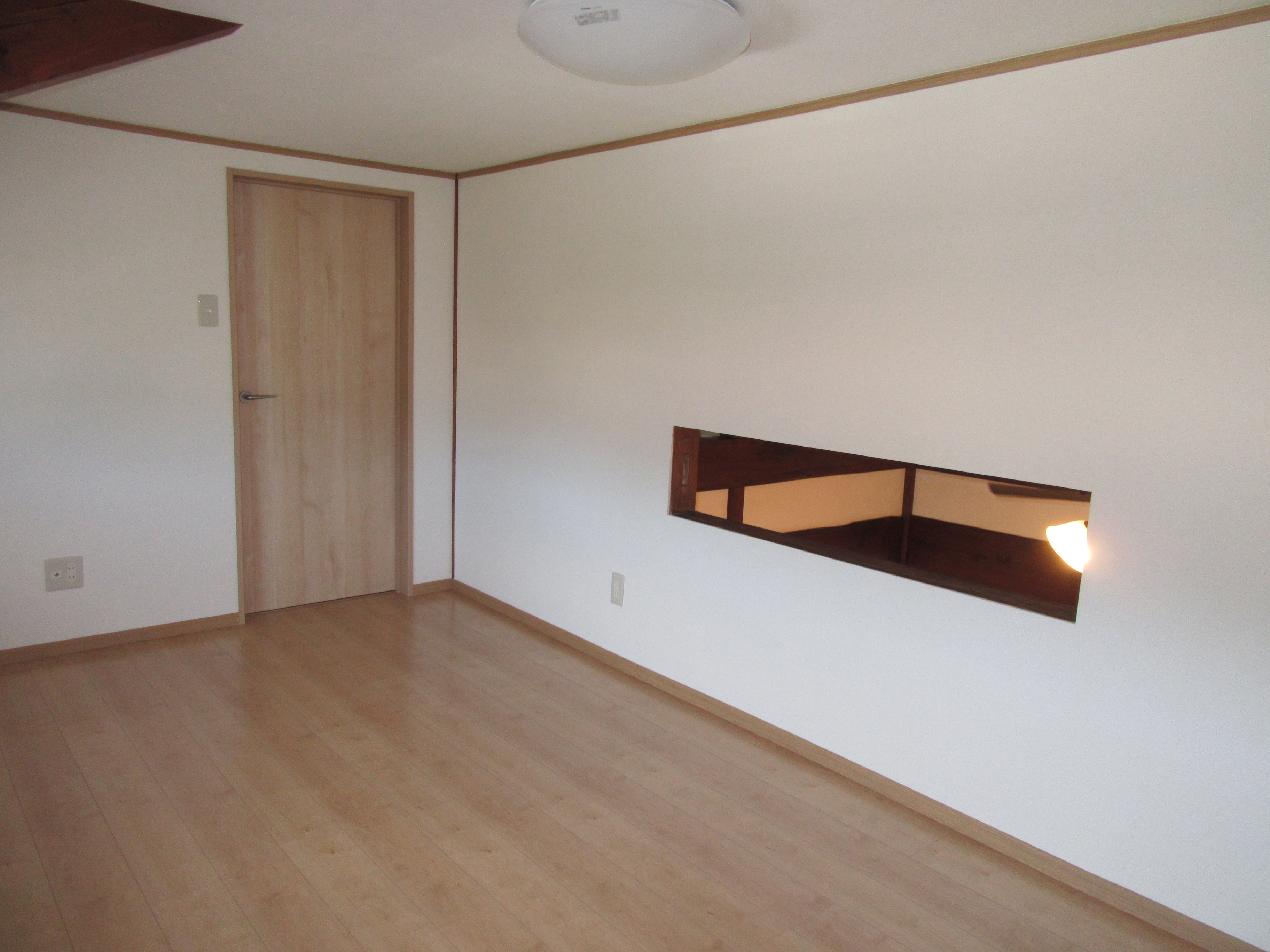 2階洋室。こちらの2階のお部屋から1階にある吹き抜けになっているリビングを見ることが出来ます。開閉することが出来るので換気やお部屋の温度調整に使うこともできます。