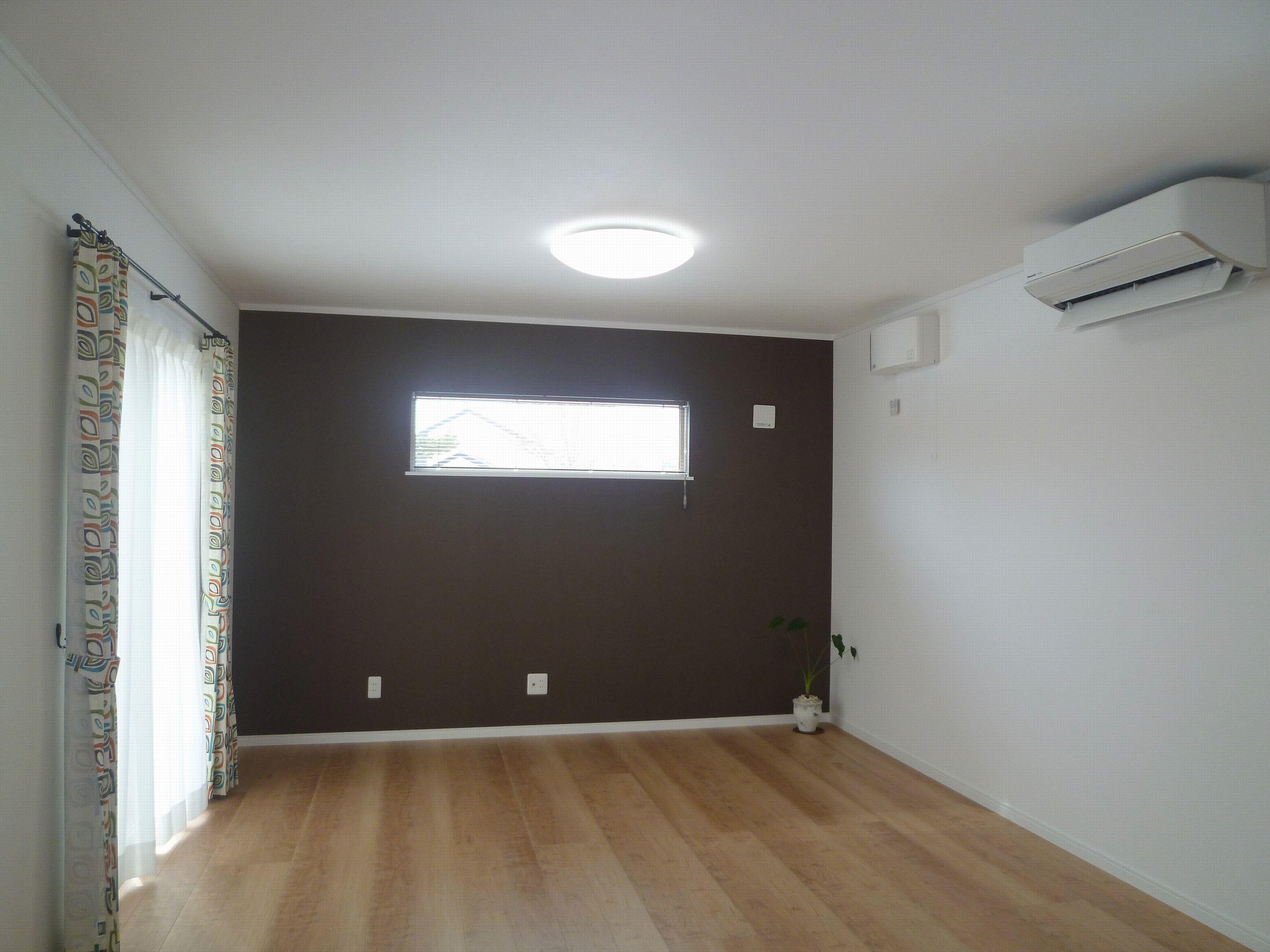 アクセントにクロスを貼り分けをしました。ワンポイントで濃い色のクロスを採用することで空間をグッと引き締めます。