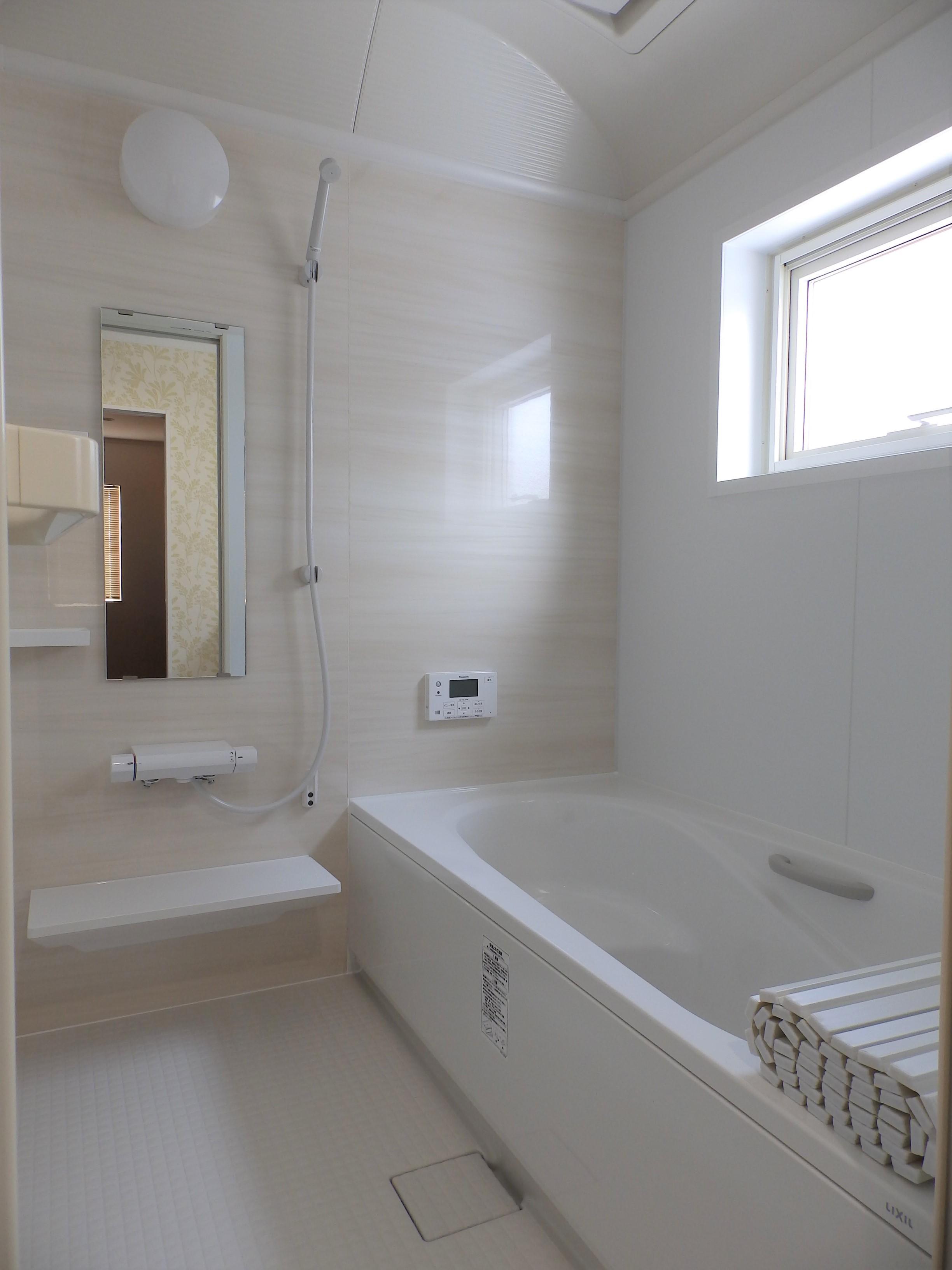 清潔感のある明るいバスルーム。天井はドーム型なので空間が広く感じ、また天井からの水滴の落ちにくくなっています。