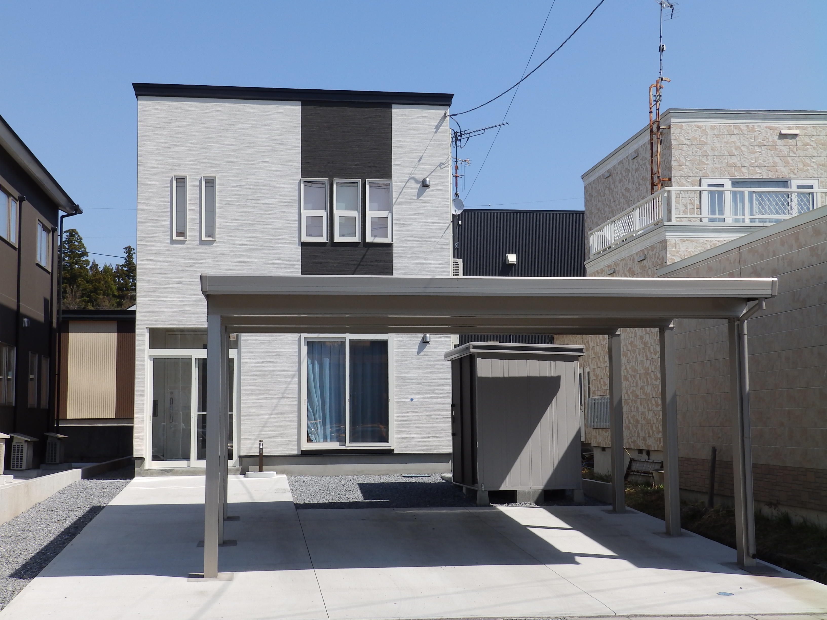 新築住宅をご購入いただいたお施主様。カーポートと風除室を設置されました。カーポートも風除室も北国にとって強い味方!年中快適です。
