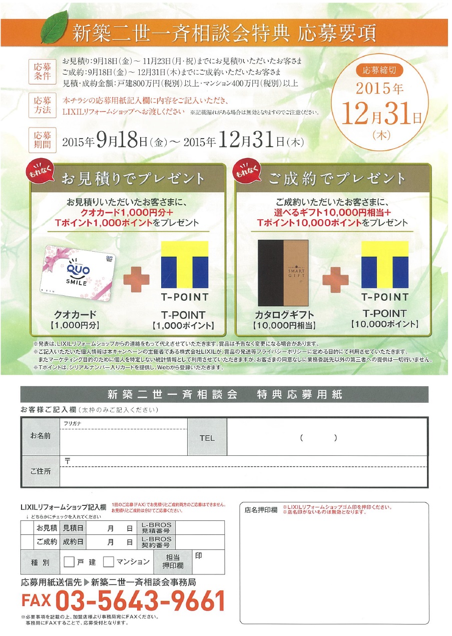 キャンペーン期間中にお見積もり、またはご成約いただいたお客様には