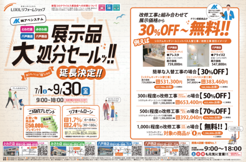 「展示品大処分セールッ!!~残りモノには''福''がある!~」延長決定のお知らせです♪