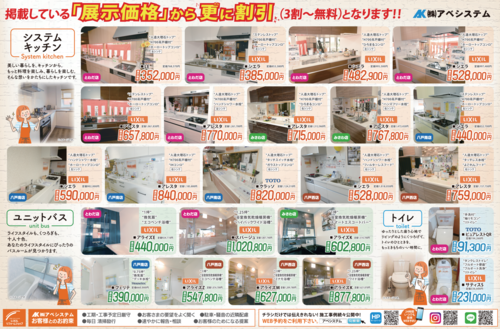 ・表示価格には商品設置に必要な工事代金等は含まれていません。現地調査をした上で工事代金等を含めたお見積りをご提示します。