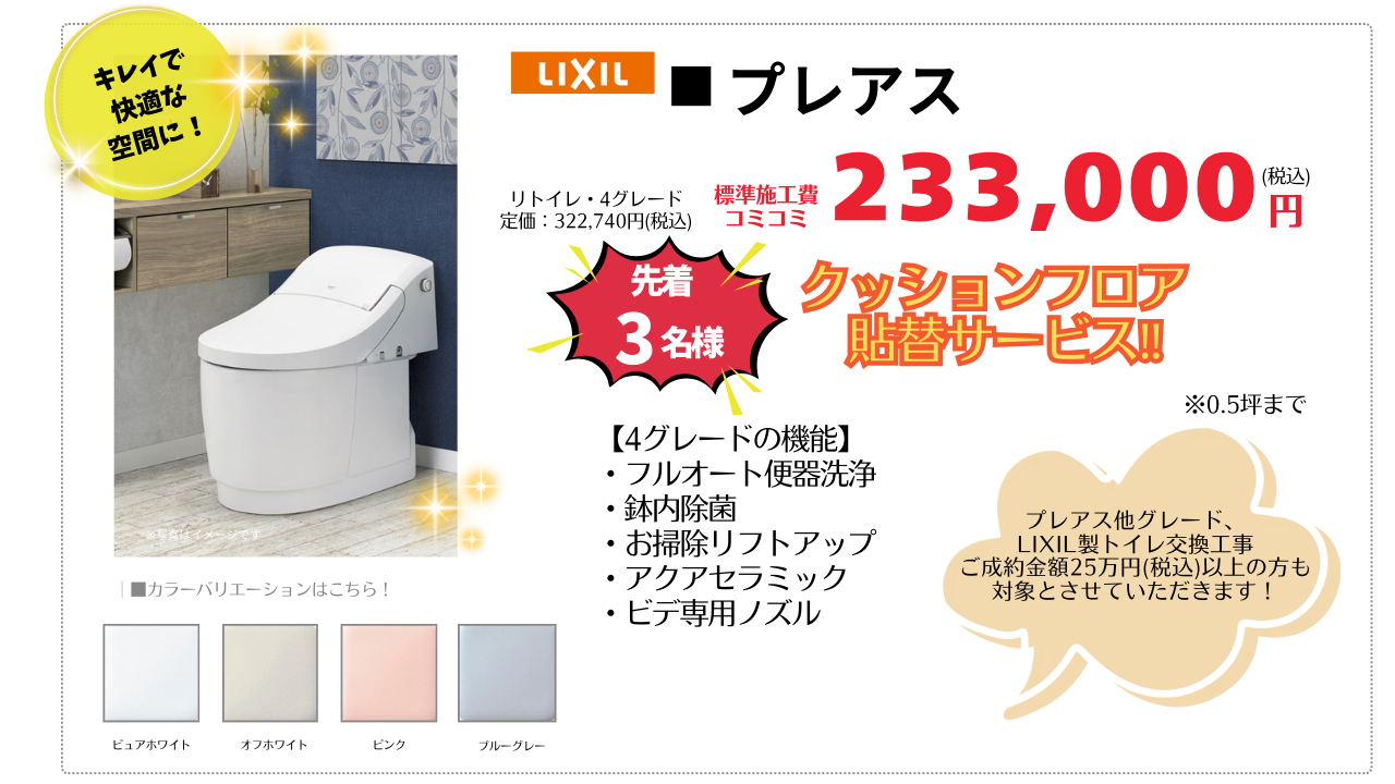該当キャンペーンのチラシをご持参いただき、対象のトイレをご成約いただいた方へ