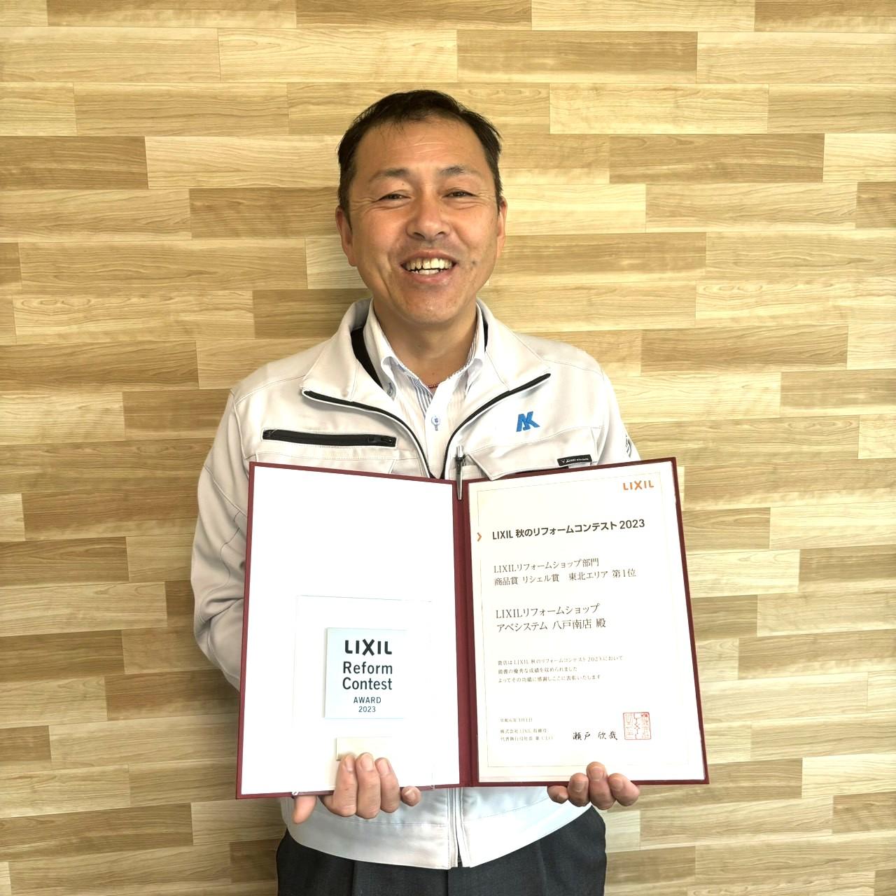 みなさまのおかげで、LIXILリフォームコンテスト2023の商品賞・リシェル賞部門にて、なんと八戸南店が東北エリア第1位を獲得しました✨