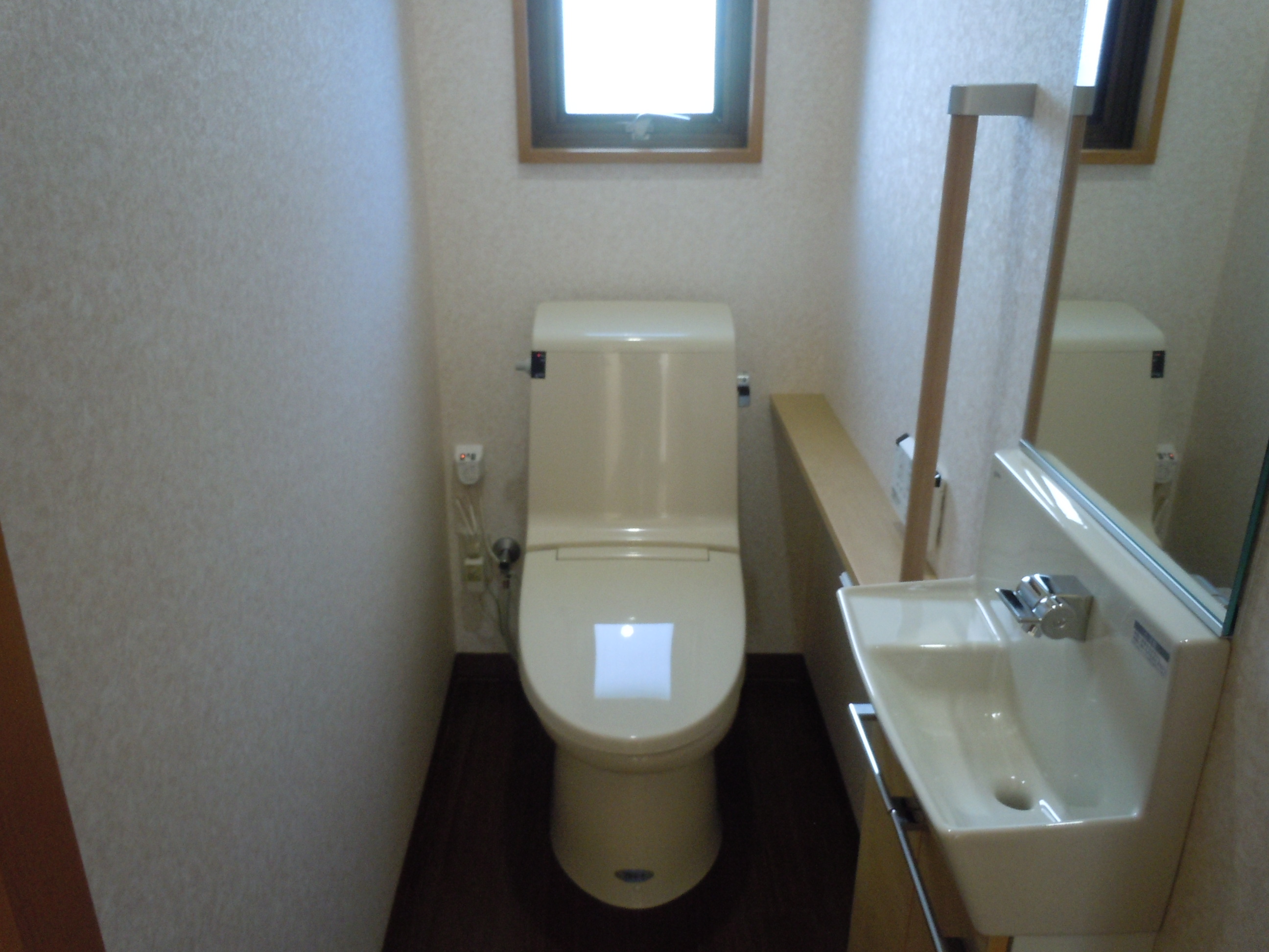 兼用便器を洋便器にとりかえました。手洗いと手すりを設け、高齢者の方にも安心してお使いいただけます。