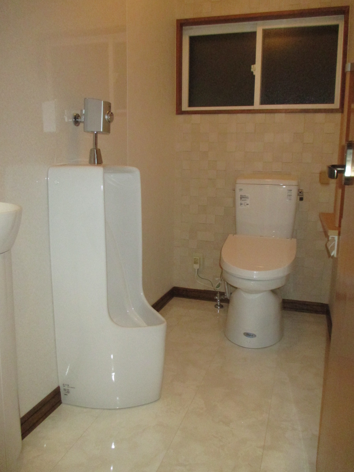 現在のトイレ内に小便器の設置をご希望され、それと共に内装も一新し清潔感のあるさわやかなトイレに仕上げました。
