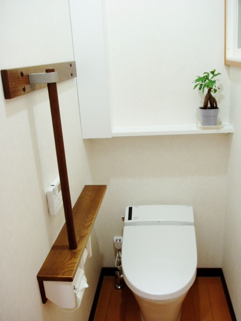 トイレ室内は、清潔感のある白に木目が引き立つデザインに、便器は節水タイプでお掃除のしやすいものをご提案いたしました。