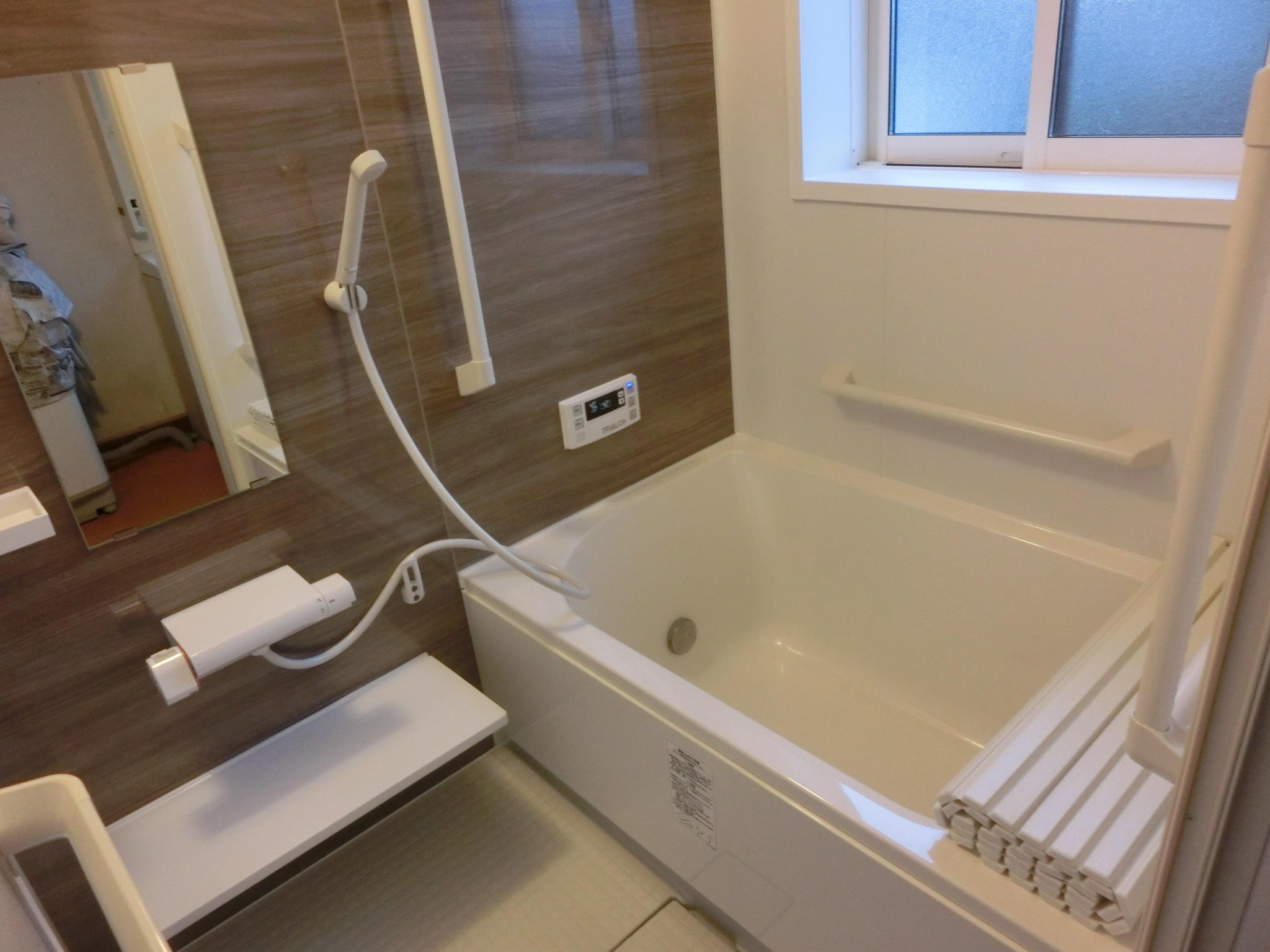 もっとゆっくりくつろげるバスタイムにするため、以前と変わらない広さでもリラックスして入浴できるアーチライン浴槽を起用しました。また冷たいタイル張りの床からキレイサーモフロアにし、スポンジだけでもお掃除ラクラク、冬場でも冷ヤッとしない床に変身!さらに壁はパネルタイプなのでタイルのように目地もなくお手入れ簡単になり、浴槽への出入りをサポートする握りバーも設置しました。