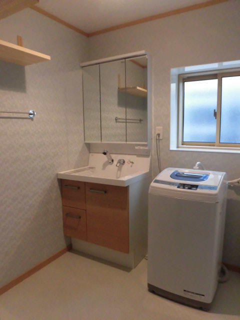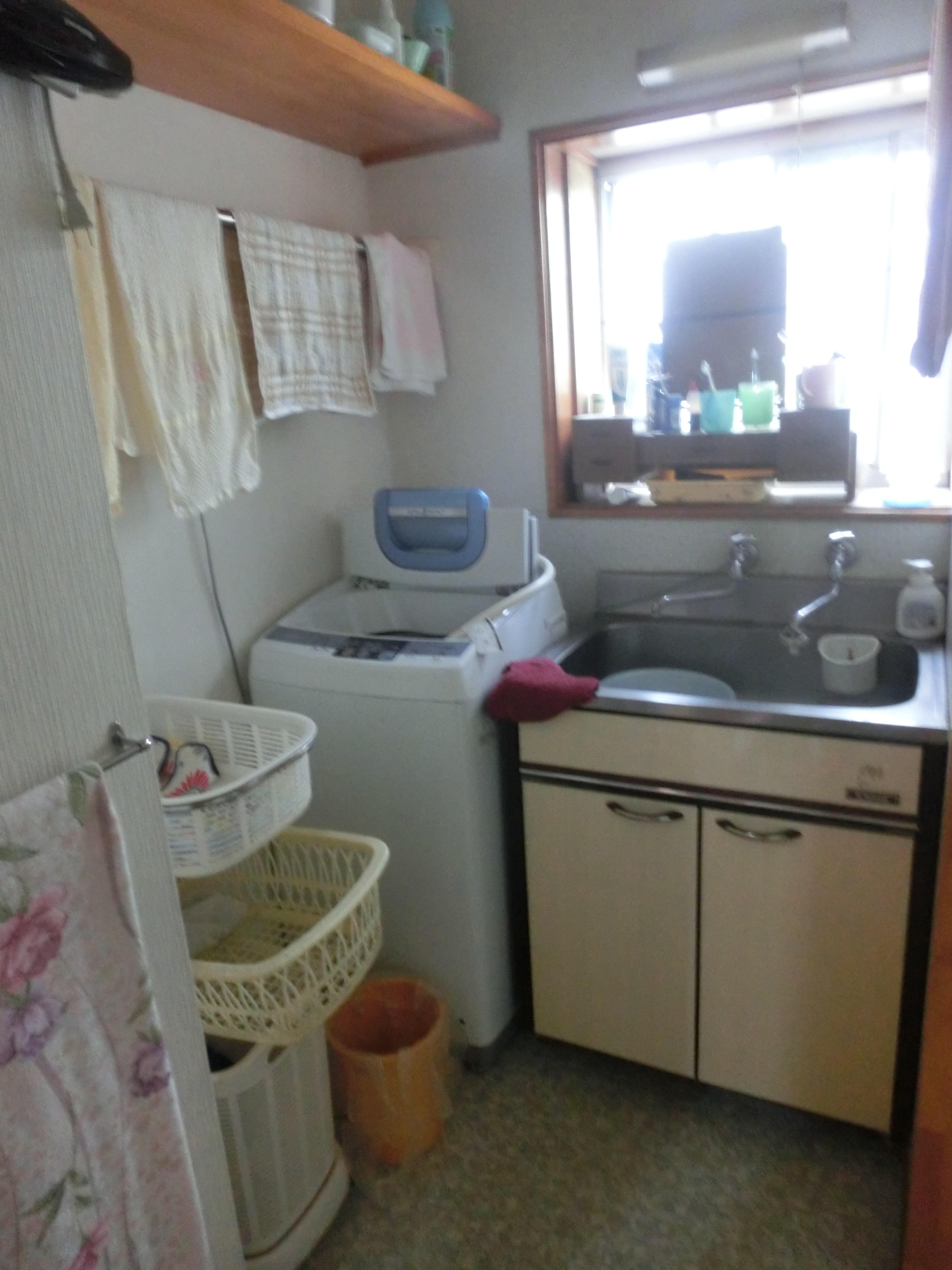 以前のものより洗面器が広くなり平らなのでつけ置き洗いなど家事にも大活躍です!手入れの面倒な排水口は、てまなし排水口になり髪・ゴミを確実にキャッチするうえに、水はけの良い形状になっています。ハンドル部分は正面の壁面から出ていることで根元部分に汚れが溜まることがなく清潔です。鏡は三面鏡にし収納量がグンとアップ!また、洗面所を45cm広げて洗濯機を窓の下に、壁のある方に洗面化粧台を配置しました。