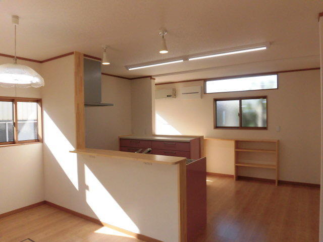 居間とキッチンとの間にあった壁を撤去し、オープンキッチンになったことでリビングの様子を見ながら安心して家事が出来る造りになりました。背面側にはカウンターとしても使えるフロアキャビネットを設け、収納力だけでなく作業効率もアップ!調理スペース下収納の奥行きが標準よりも最大10cm広がり、今まで出しづらかった一番奥のものもストレスなく取り出せます。