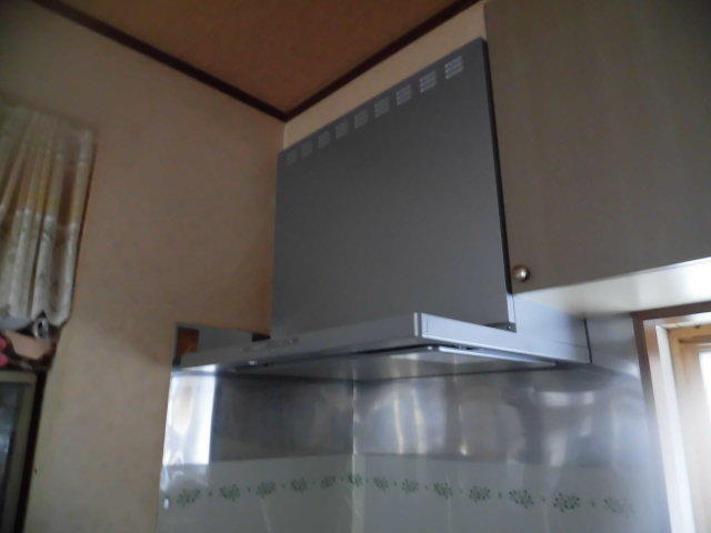 すぐ油でベタベタになってしまう換気扇にお困りでご来店され、展示品を実際に見ていただきました。展示している「よごれんフード」は一番大変でめんどうなファンのお掃除がいりません。ファンまで油がいかない構造になっているため普段のお手入れはフードや整流板をサッとひと拭きで◎。フッ素塗装されているので簡単に汚れが落ちます。また、油が途中で分離するので排気口がある外壁も汚れづらいです。施工も短時間でできることから交換を決められました。