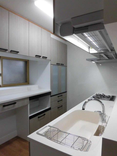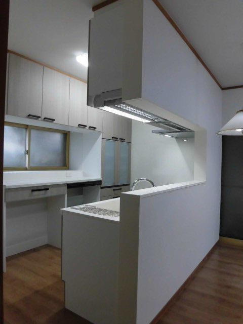 おばあちゃんの介護リフォームをきっかけに、家の気になる部分のリフォームを決意されたO様。家族の希望を聞き出し、キッチンは奥様の理想の空間を造ることに!忙しい奥様のために、家事導線の効率化と、キッチンでの作業を楽しんでもらえるよう、こだわり満載のキッチンになりました!!