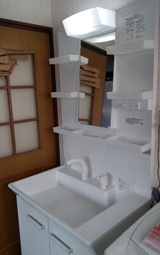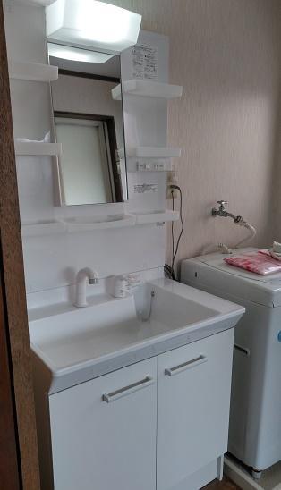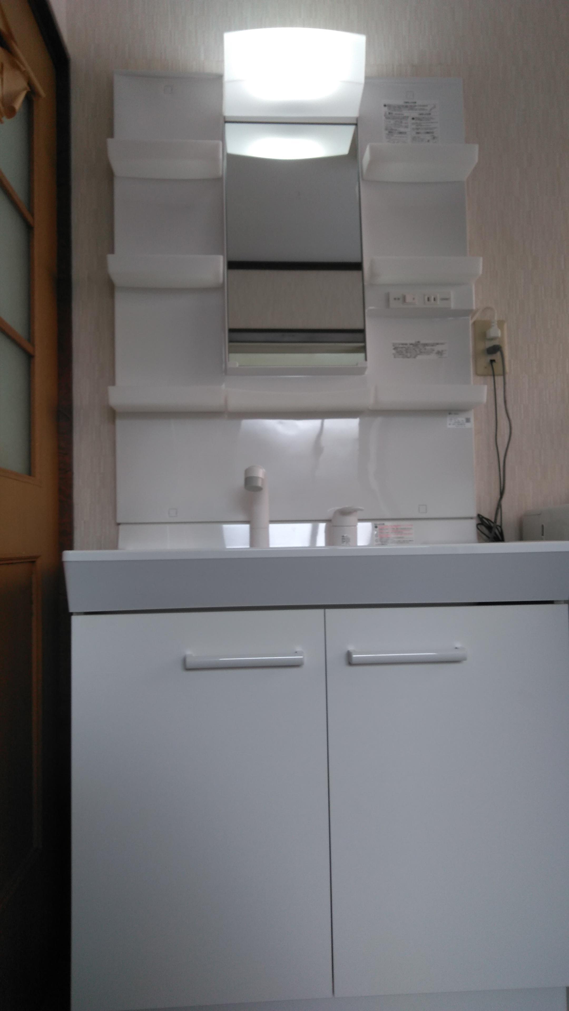 交換後、やっと使えるようになり、安心したご様子のS様。使い勝手がさほど変わらない上に省エネな新しい洗面化粧台に、とても感心されていました。