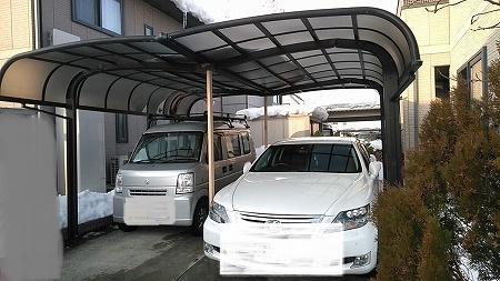 今季は豪雪のため、多くの雪害に見舞われた岩手県南部。S様のお宅でも、カーポートが壊れてしまいました。設置していたカーポートは支柱4本のポリカーボネート屋根タイプ。積雪の重みに耐えきれず屋根の中央から沈み始め、支柱の継ぎ目まで歪んでしまい、木材で突っ張り持ちこたえました。