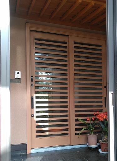 玄関は、和の雰囲気はそのままに、タッチキー付の引戸へ交換。インターフォンはモニターフォンへ交換。風除室は、ポーチ全体を覆わず、部分囲いにしました。