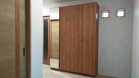 ご夫婦で相談され、イメージはほぼ出来上がった状態でご相談いただきましたので、細かくプランを作成し、ご提案しました。その中で玄関が狭い、とのご不満をお持ちでしたので、玄関の向きを変更し、拡張するプランをお渡ししたところ、気に留めていただき、ご契約いただくことになりました。また、玄関に面した和室に建具をつけることで、玄関からの出入りの他、小上りとしての使用も可能になりました。