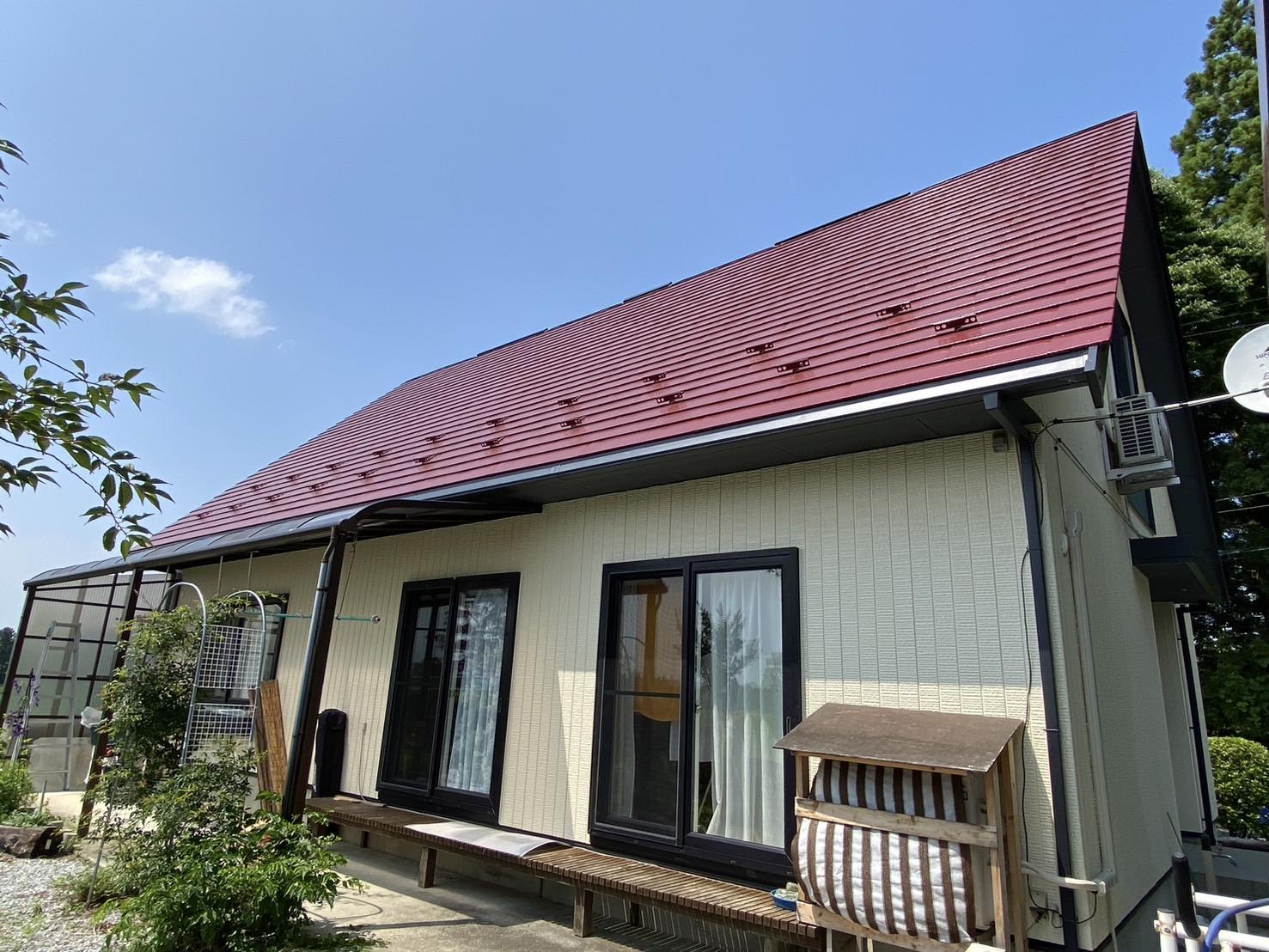 長年慣れ親しんだ落ち着いた淡いグリーンの屋根は、ビビッドな赤にガラッとイメージチェンジ!外壁は濃いベージュからクリーム色にトーンアップ!