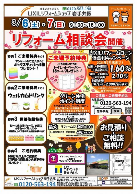 2021年3月6日(土)、7(日)にLIXILリフォームショップ岩手共販でリフォーム相談会を開催します。