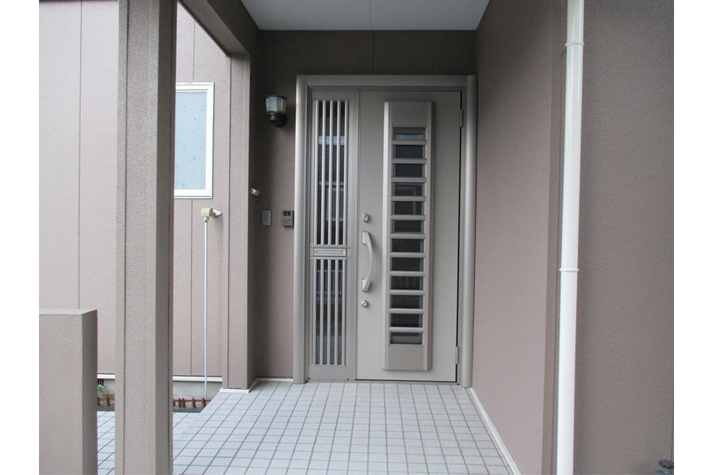 デザイン、採風性、断熱性等を考え、外壁や内装等を解体することなく 1日で工事が完了する LIXILのカバー工法ドア「リシェント」を採用いたしました。