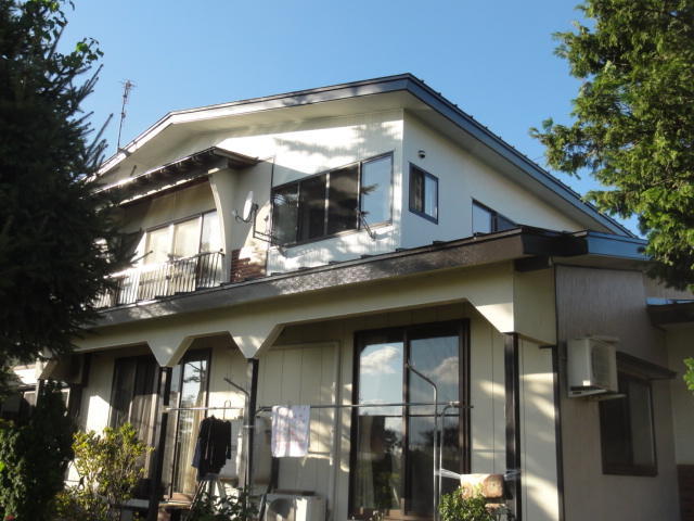 子世帯同居に伴い、2階の居室を増築したい。また、屋根、外壁の劣化も見られるので修繕したいとご要望でした。 2階部分の増築のため、屋根の勾配に留意し、隣接する居室にも採光が取れるよう開閉式のランマ窓を提案しました。外壁は、壁内の断熱材の不足も想定されたため、既存材を剥がして断熱材を充填することを提案しました。屋根は、主に軒先部分の痛みが大きかったため、全体的な葺き替えではなく、軒先の一部を交換する工法で提案しました。 工事中は柱位置を確認し、2階の床梁の補強が適正に配置しました。屋根解体時の最大の敵である雨に備え、大判にシートを二重に被せ養生を実施しました。