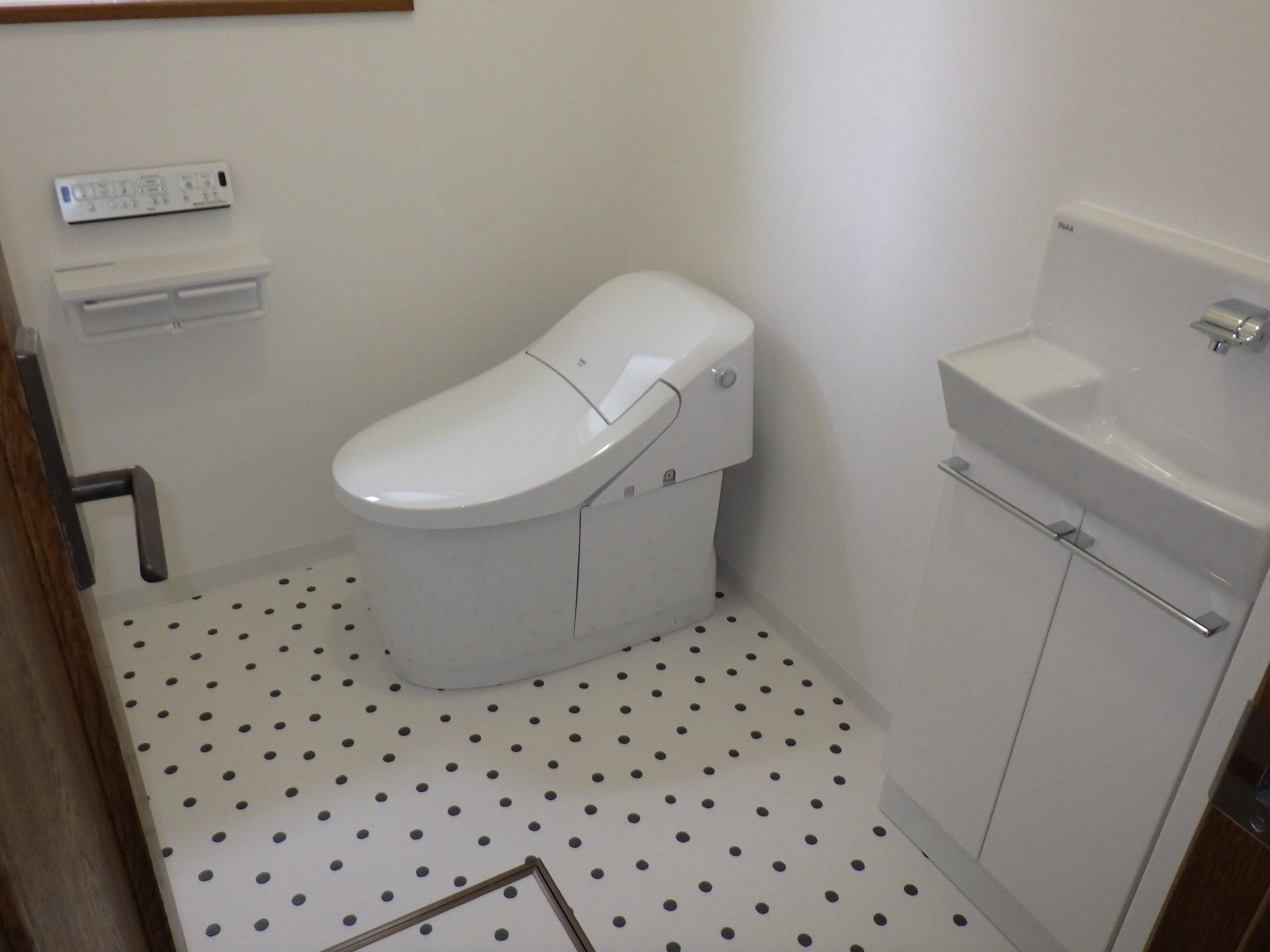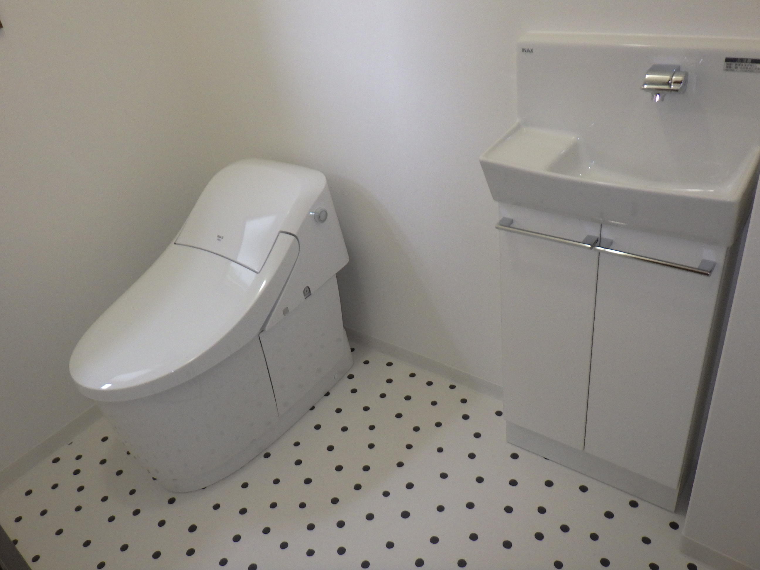 内装も含めてリフォームしました。ドット柄の床が、オシャレです。