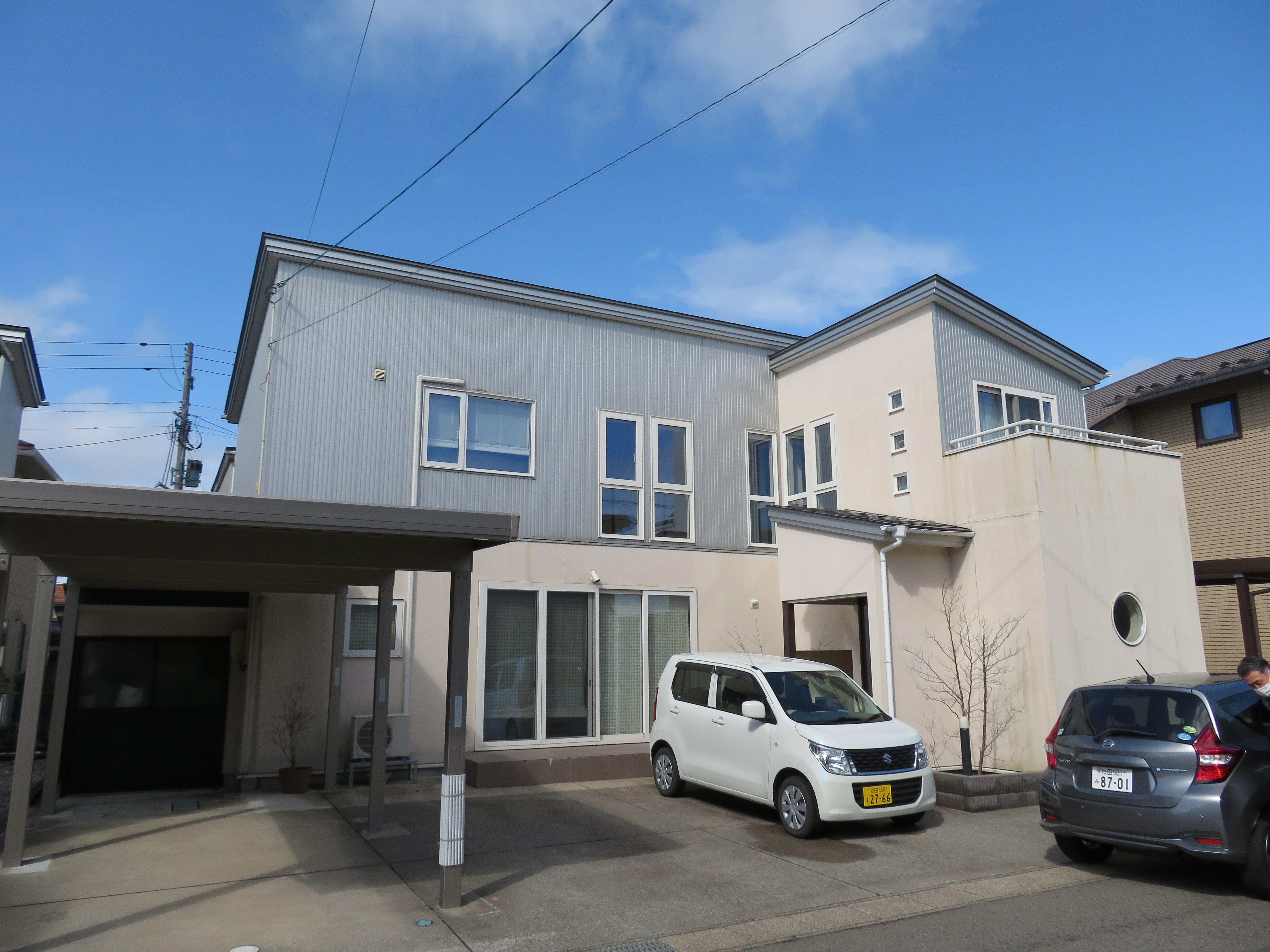 モルタル外壁の汚れとヒビ割れが気になるお客様にDanサイディングを提案させて頂きました。 Danサイディングはとても軽量な外壁材なので重ね張りに最適です。既存のモルタル外壁を解体撤去しないので工期短縮にもなりました。
